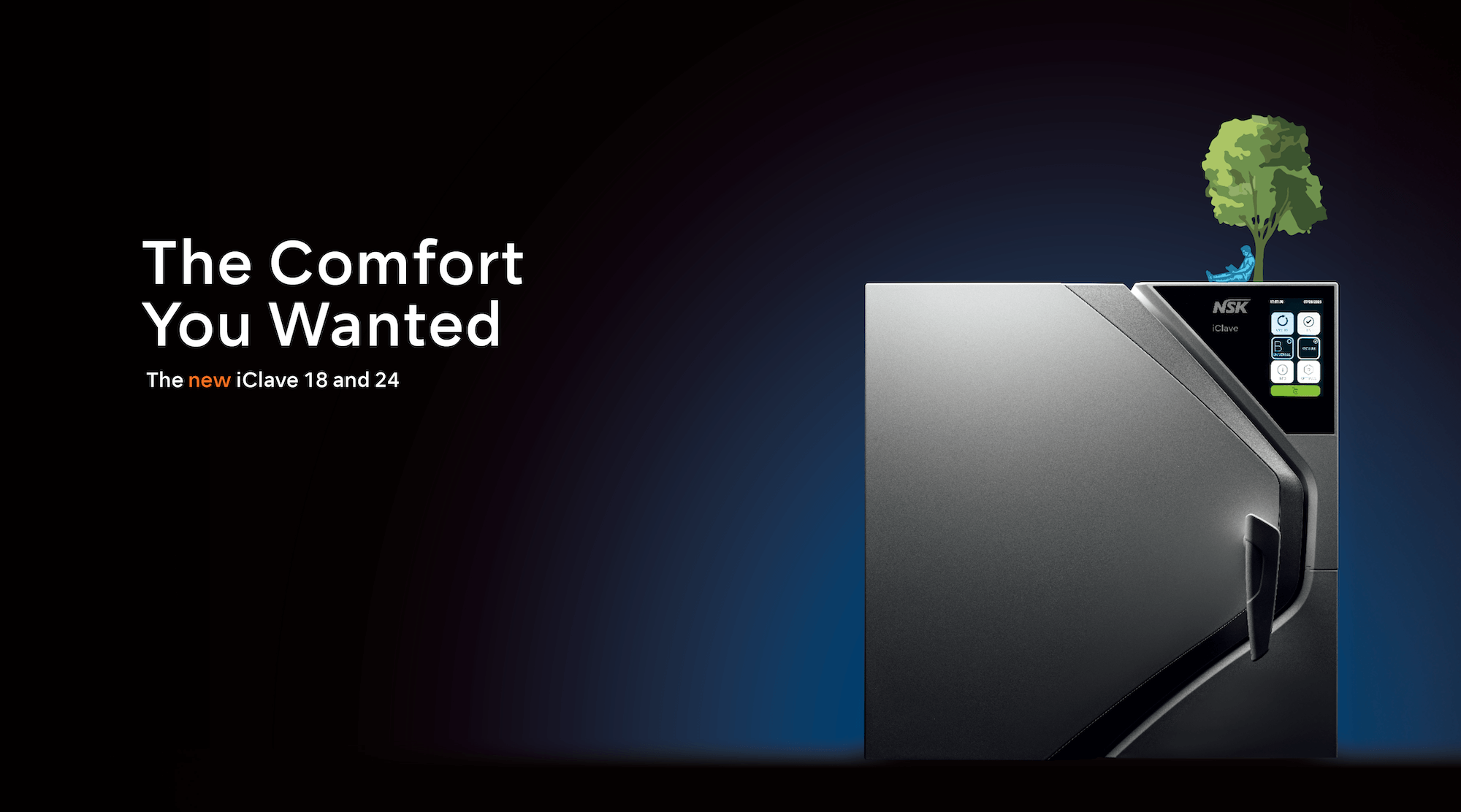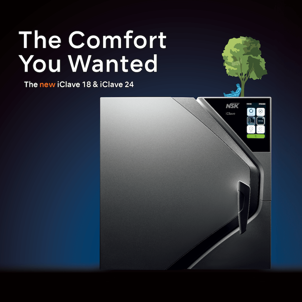But there’s more. Its user-friendly colour touchscreen, elegant, ergonomic design, and cutting-edge technology make iClave 24 a safe, efficient device that is also a pleasure to use. NSK’s unmistakable quality and reliability ensures impeccable sterilisation, making iClave 24 the effective and comfortable answer to your needs.